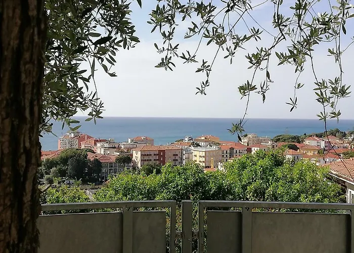 モロ デッレ タルタルーゲから徒歩で20分のSugli Allori ディアーノ・マリーナ ヴィラのテラスからは、海の海辺の景色を楽しめます。